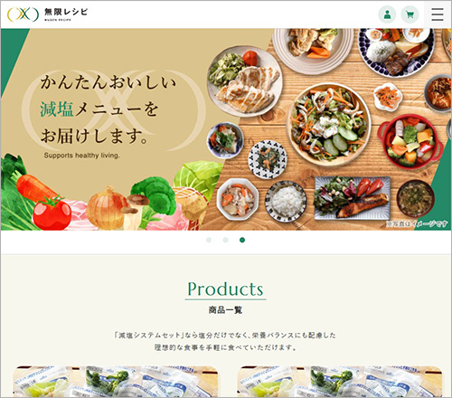 「無限レシピ」は、味を全くつけない加熱済み冷凍食材を電子レンジで温め、ソースをかければ出来上がると言う減塩食品です。